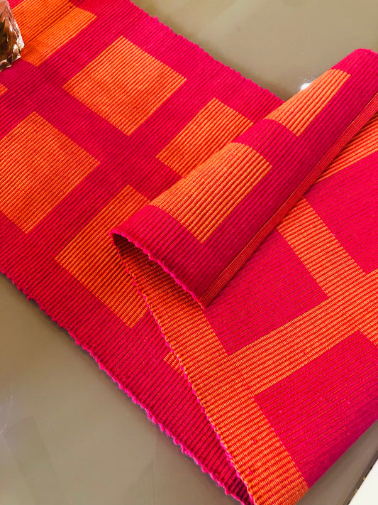 Rangbhar Handloom Ribbed Cotton Table Runner for Living/Dining Room/Home Decor, Anti Skid, Reversible, Machine Washable, 12 X 72 inches, Striped, Pink Orange Box