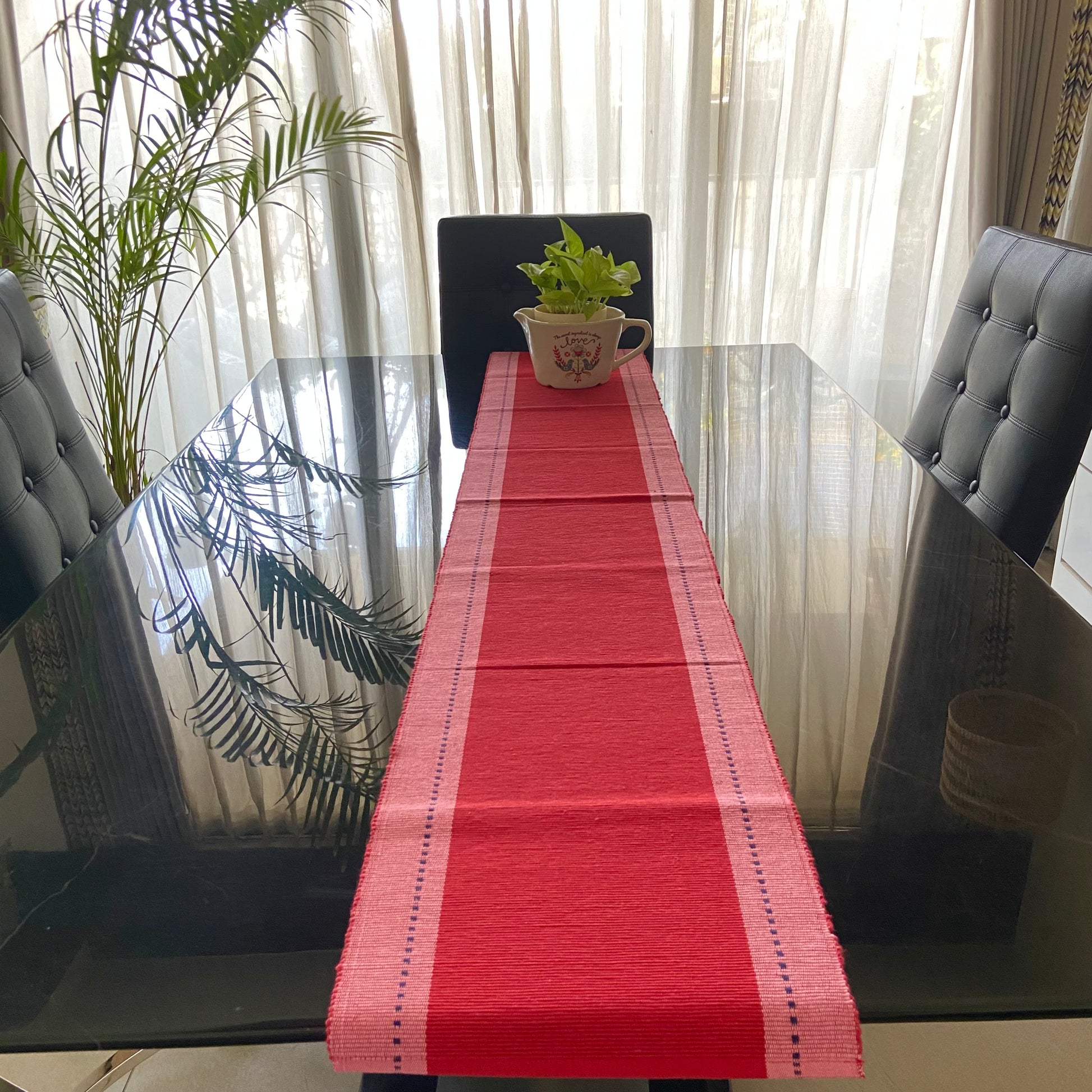 RANGBHAR's Cotton Ribbed Table Runner, measuring 12 x 72 inches, features a stylish striped pattern. Ideal for a 6-seater table, it combines elegance with heat-resistant functionality.