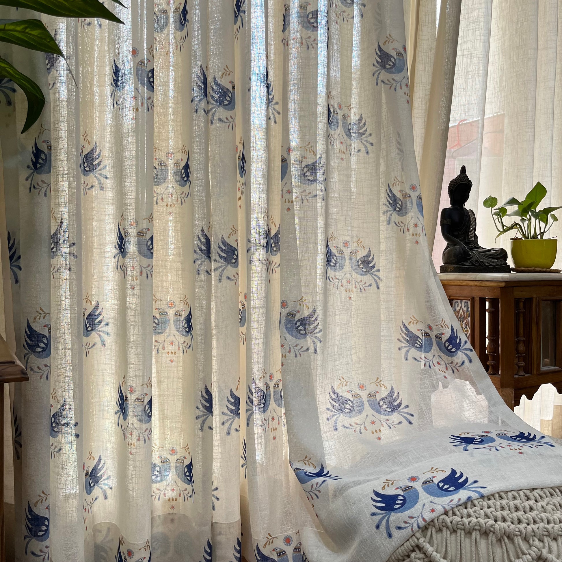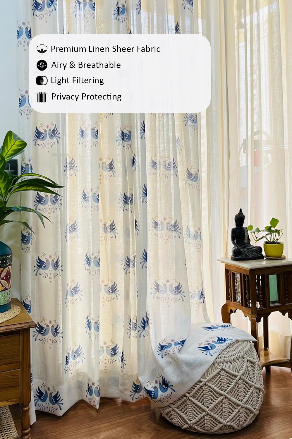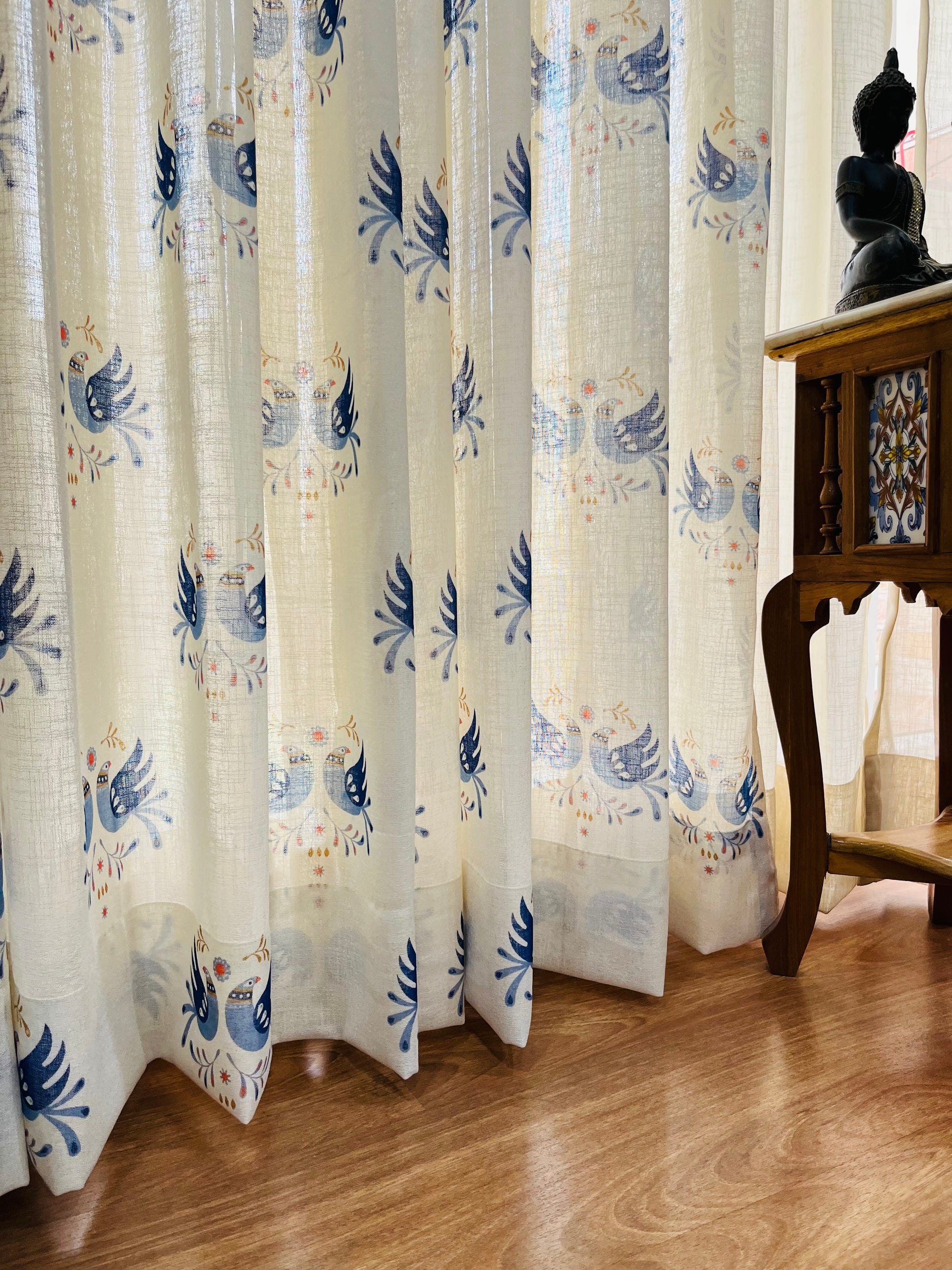 Handloom Cotton Blue Sparrow Sheer Curtains 7 feet (Set of 2)