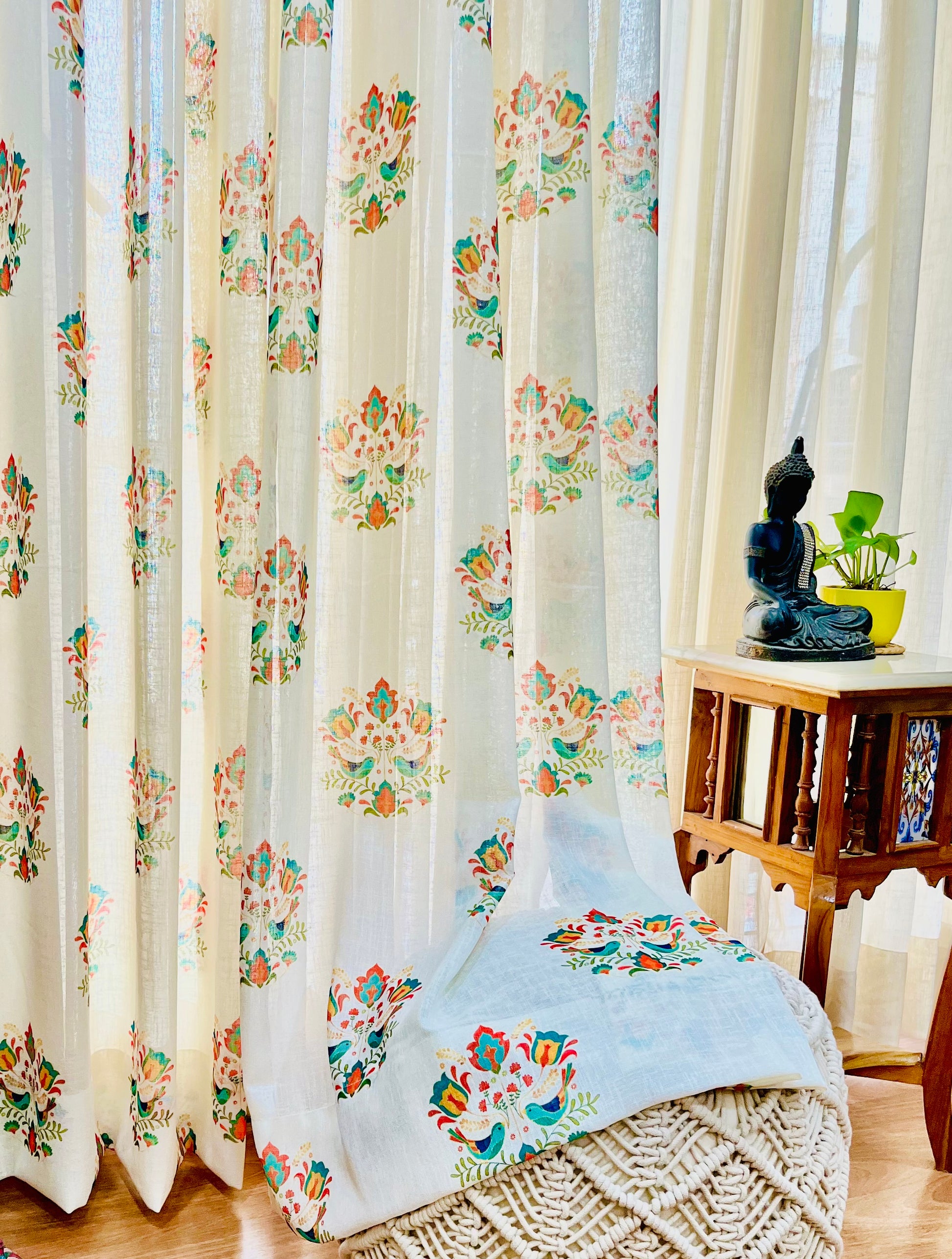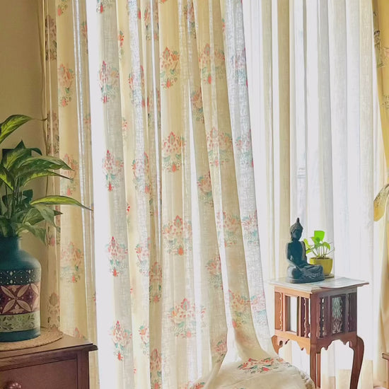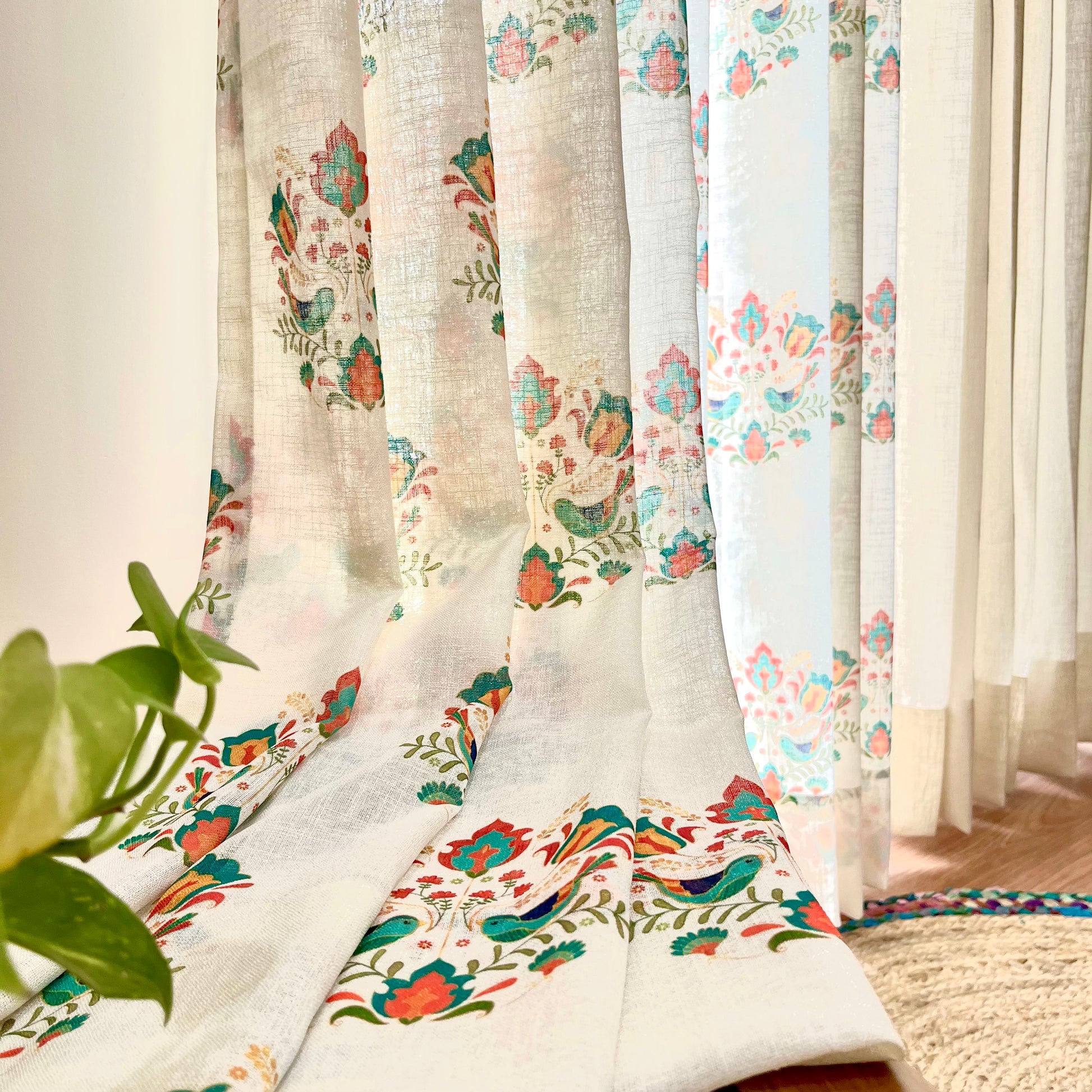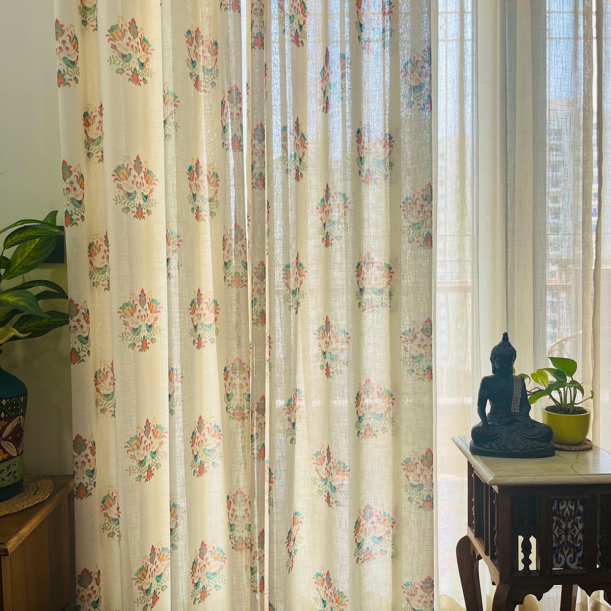Add a touch of elegance and lightness to your home with RANGBHAR's range of handloom linen Sheer Curtains. Crafted from premium linen, these curtains feature a delicate paisley pattern and a grommet top for easy installation. Perfect for creating a soft, airy ambiance, they provide gentle light filtering while maintaining privacy. Ideal for any room, these curtains blend seamlessly with various décor styles.