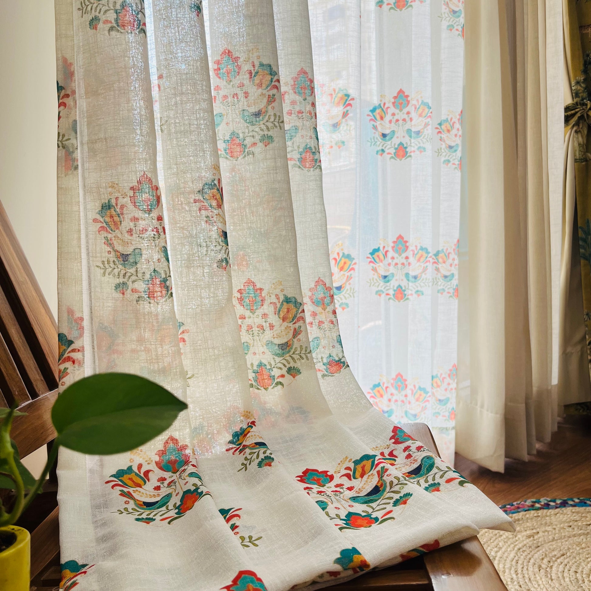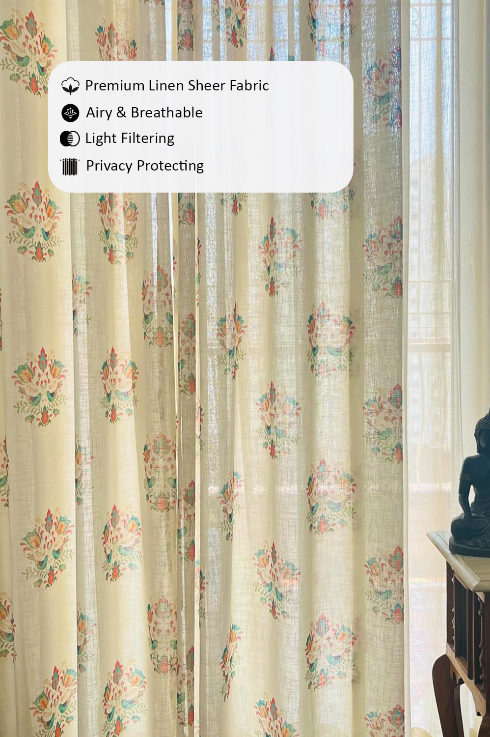 Add a touch of elegance and lightness to your home with RANGBHAR's range of handloom linen Sheer Curtains. Crafted from premium linen, these curtains feature a delicate paisley pattern and a grommet top for easy installation. Perfect for creating a soft, airy ambiance, they provide gentle light filtering while maintaining privacy. Ideal for any room, these curtains blend seamlessly with various décor styles.