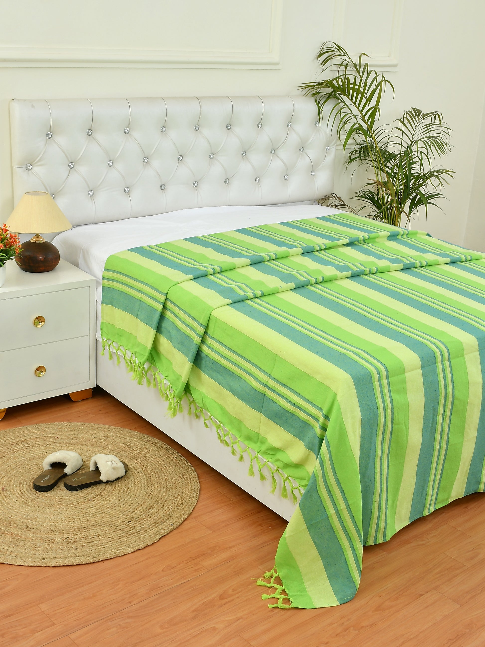 Handloom Cotton Green Striped King Bedcover without Pillow Covers