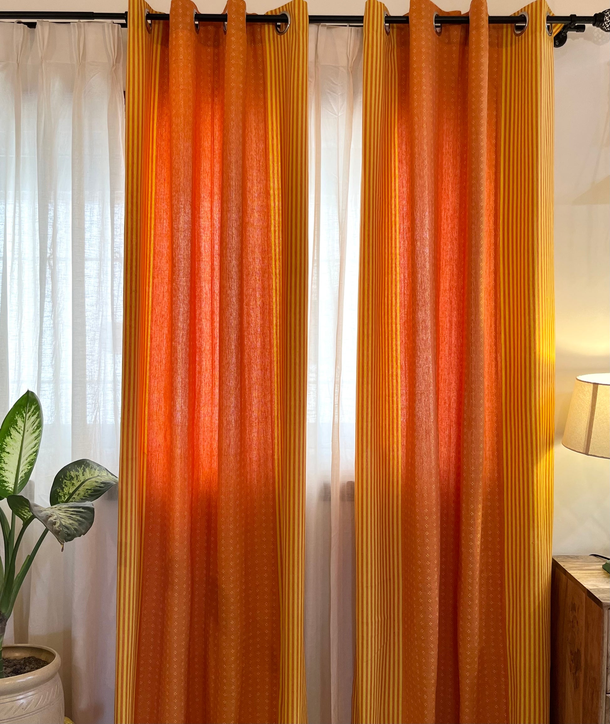 Handloom Cotton Orange-Yellow Darkened Glow Curtains 8 feet (Set of 2)