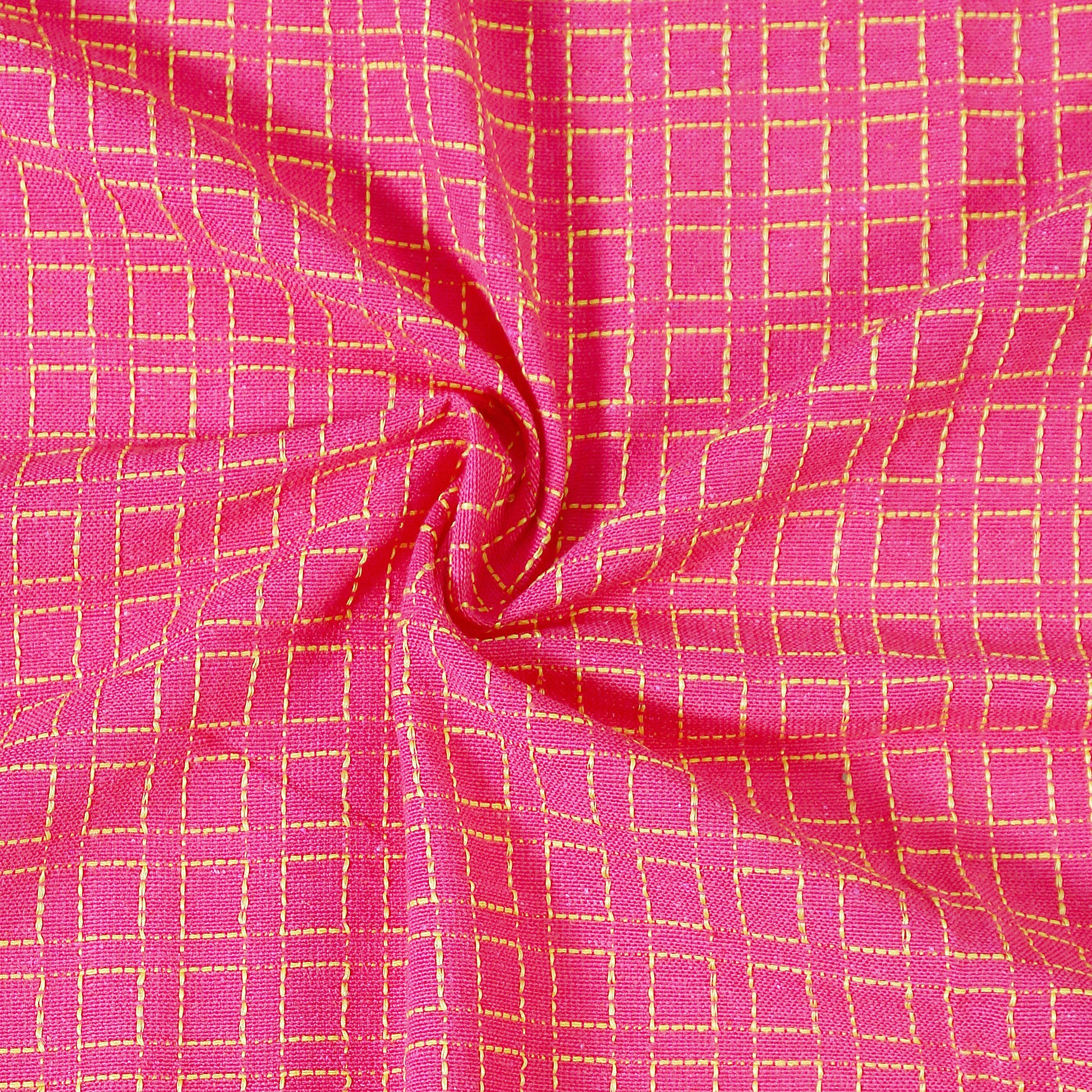 Handloom Cotton Pink Box Light Filtering Curtains 8 feet (Set of 2)
