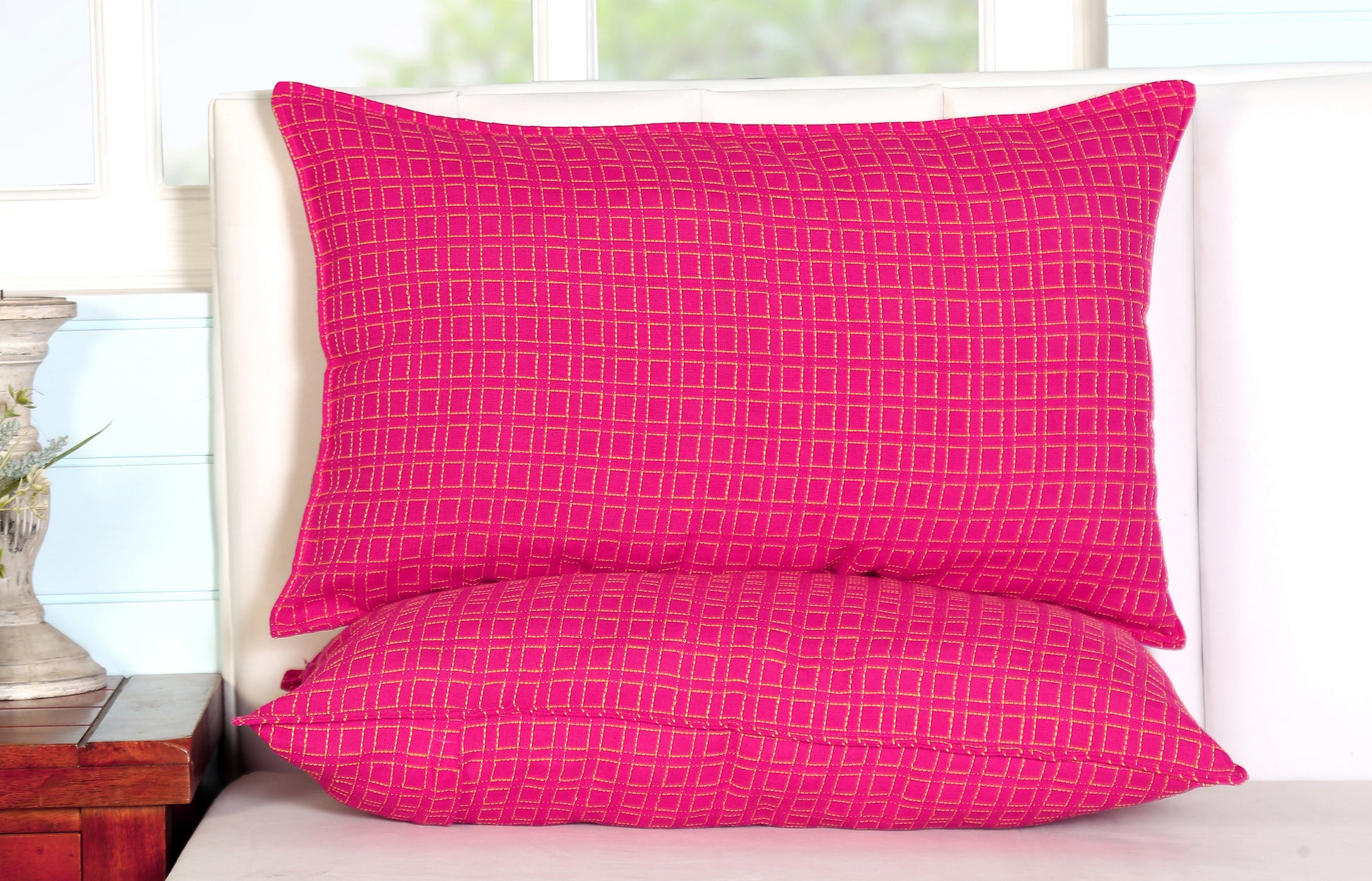 Handloom Cotton Pink Box Pillow Covers (Set of 2)