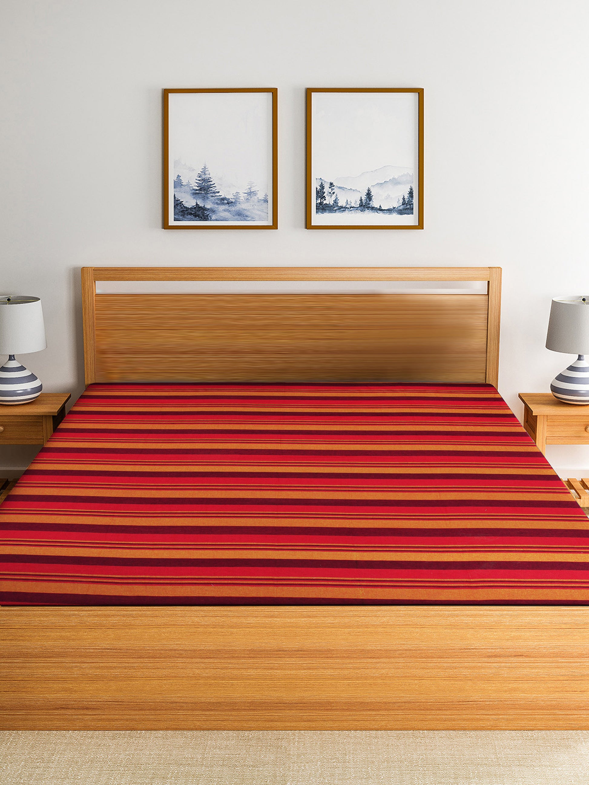 Handloom Cotton Red Striped Double Bedcover without Pillow Covers