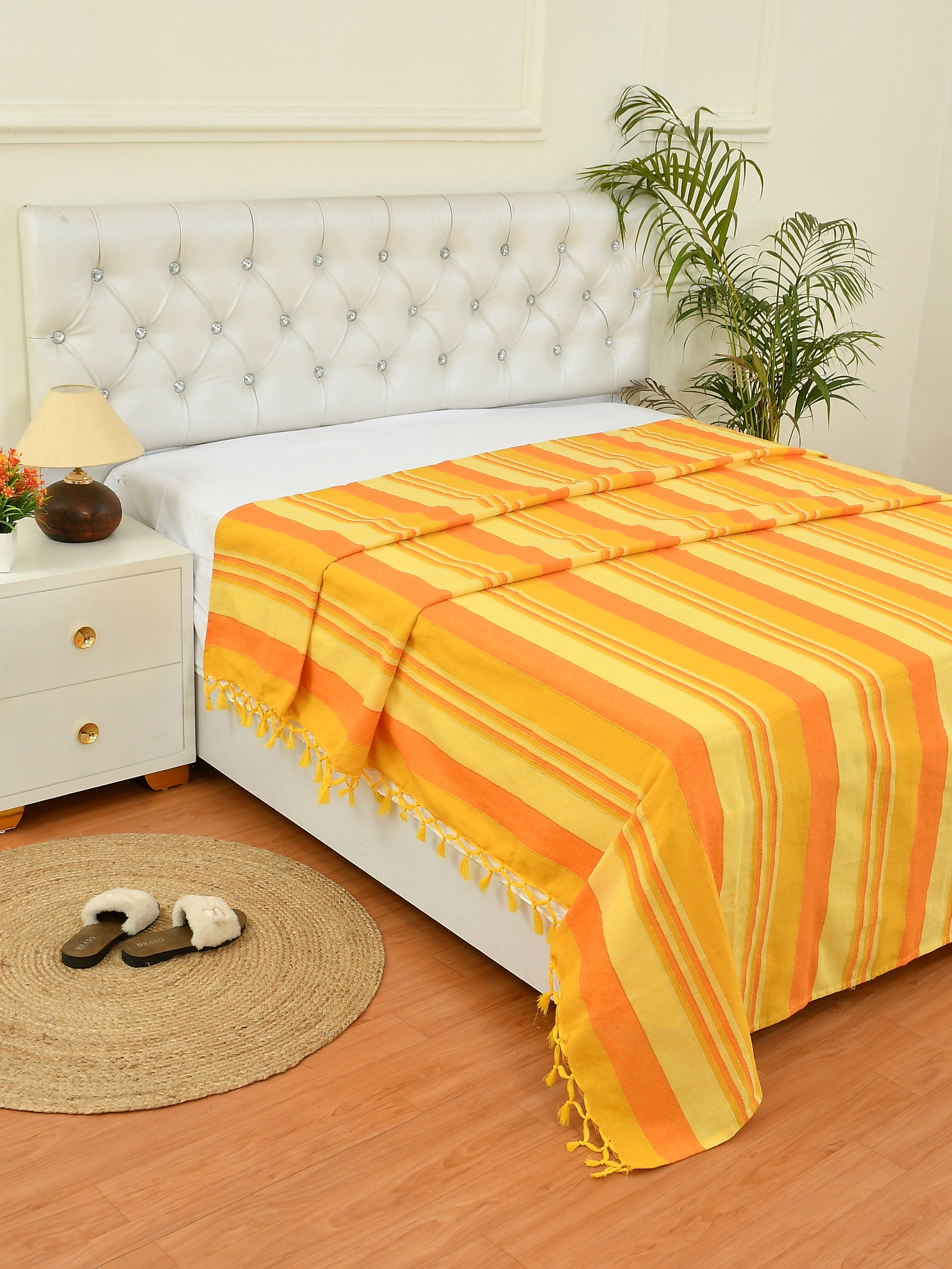 Handloom Cotton Yellow Striped King Bedcover without Pillow Covers
