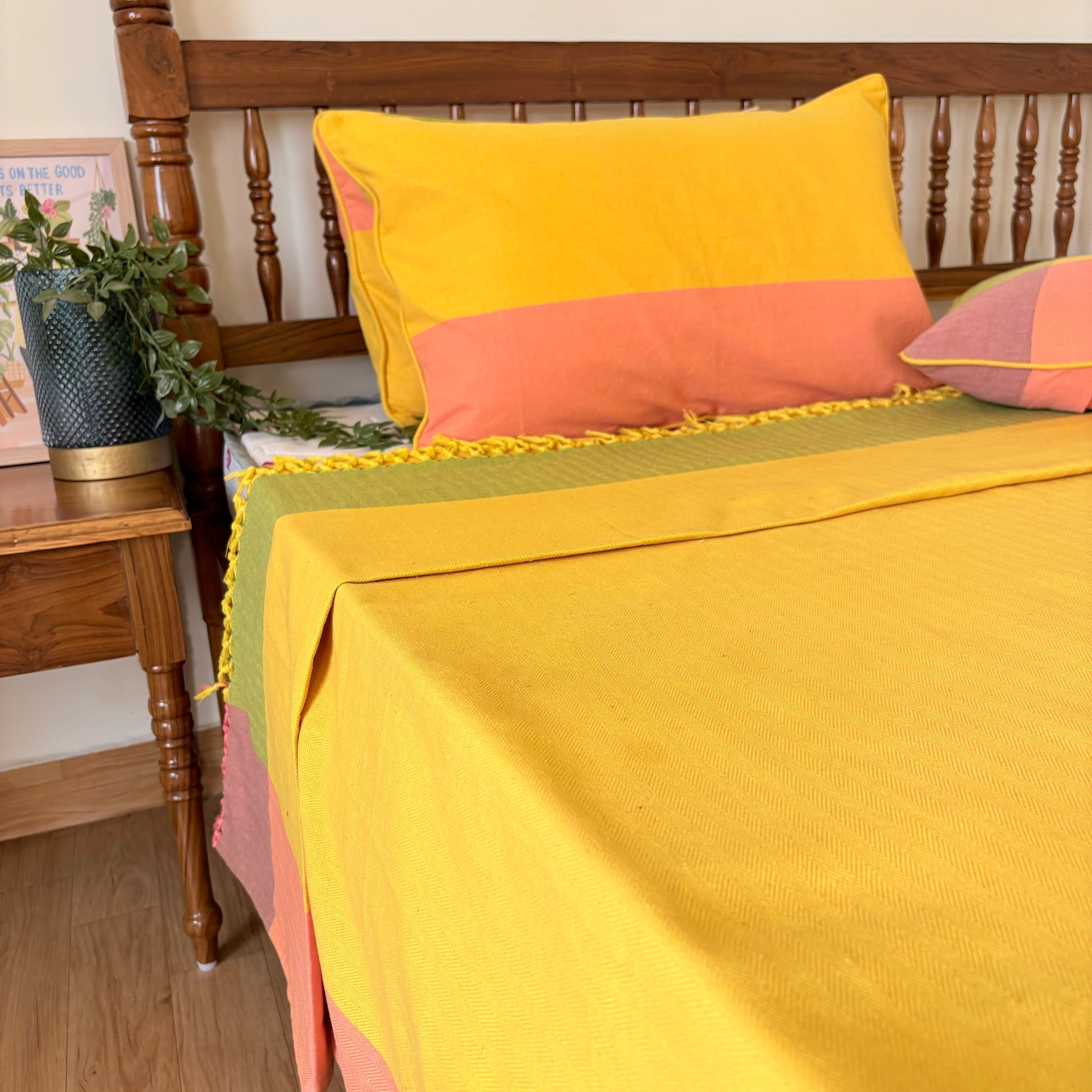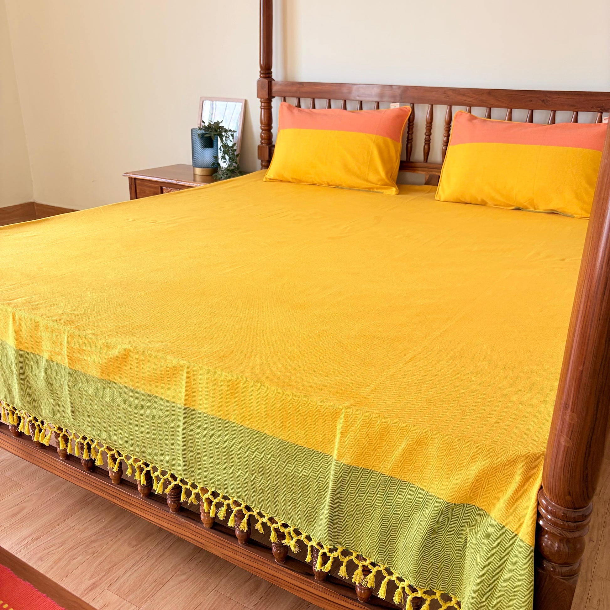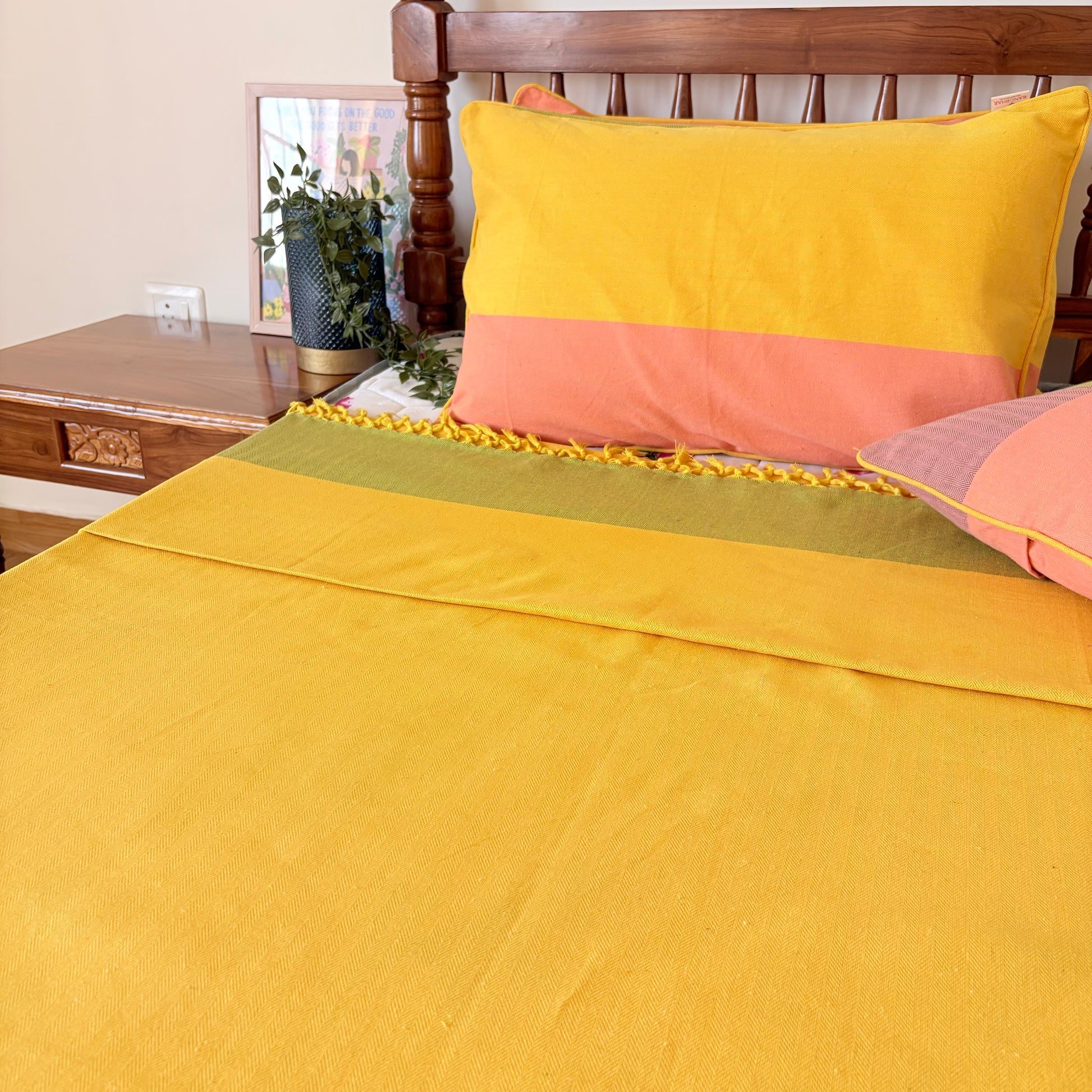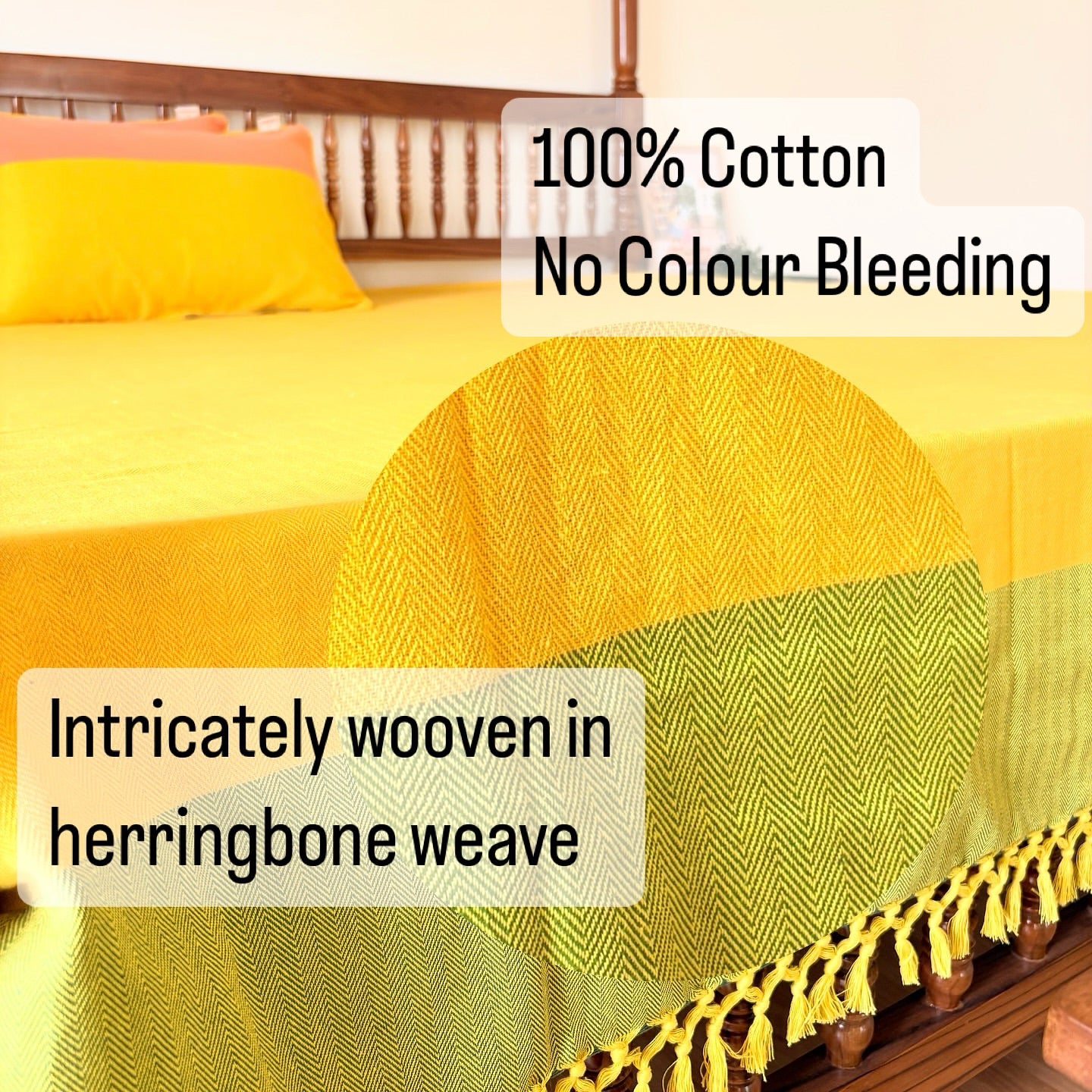Handloom Yellow Premium Cotton Bedcover with Pillow Covers