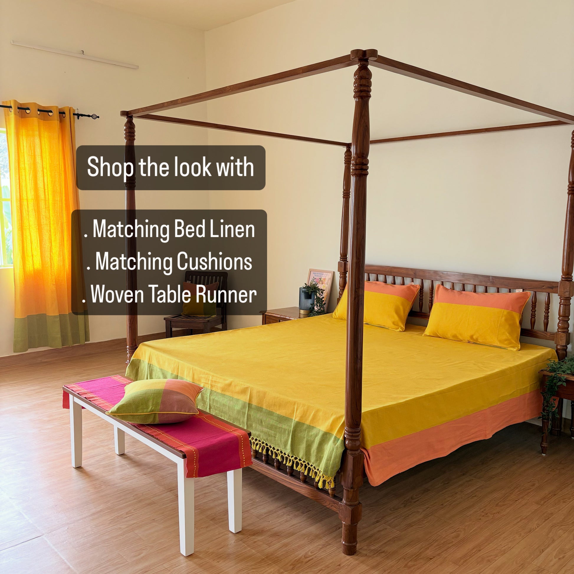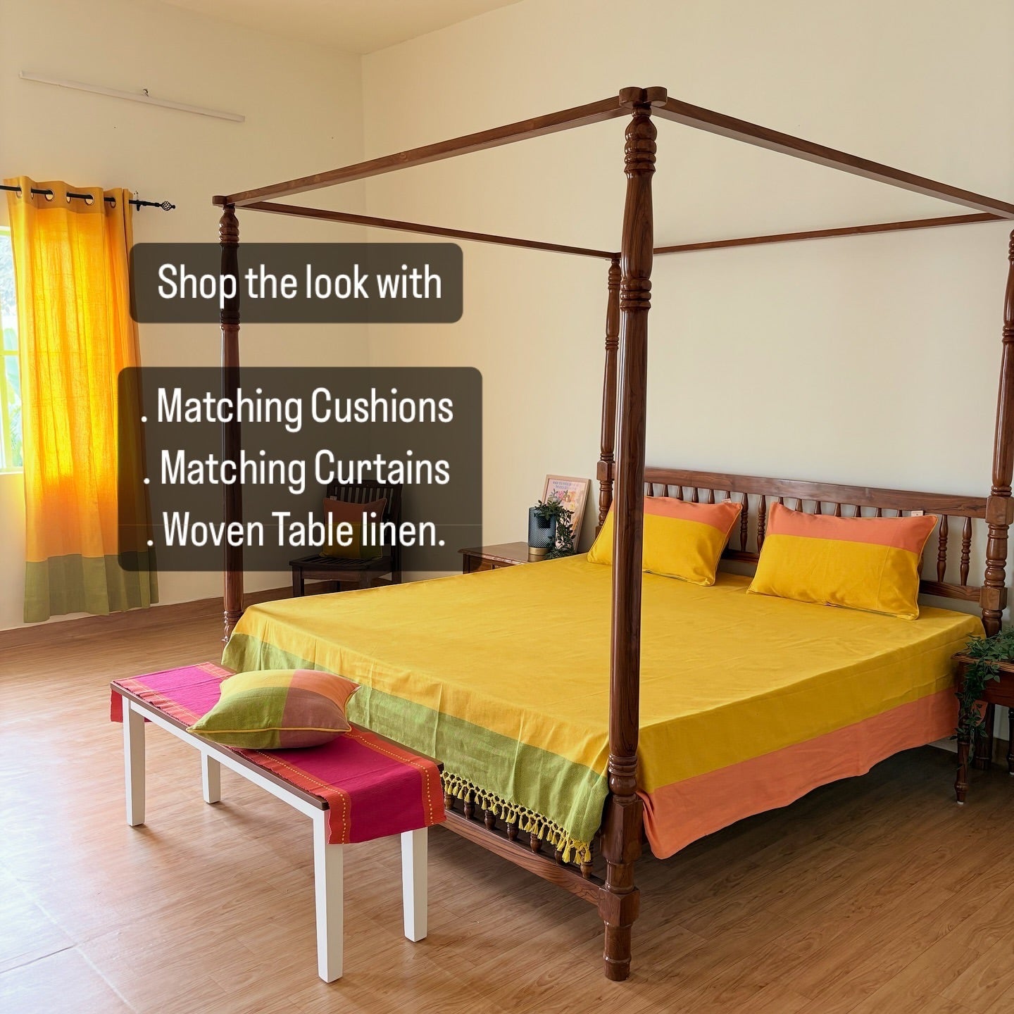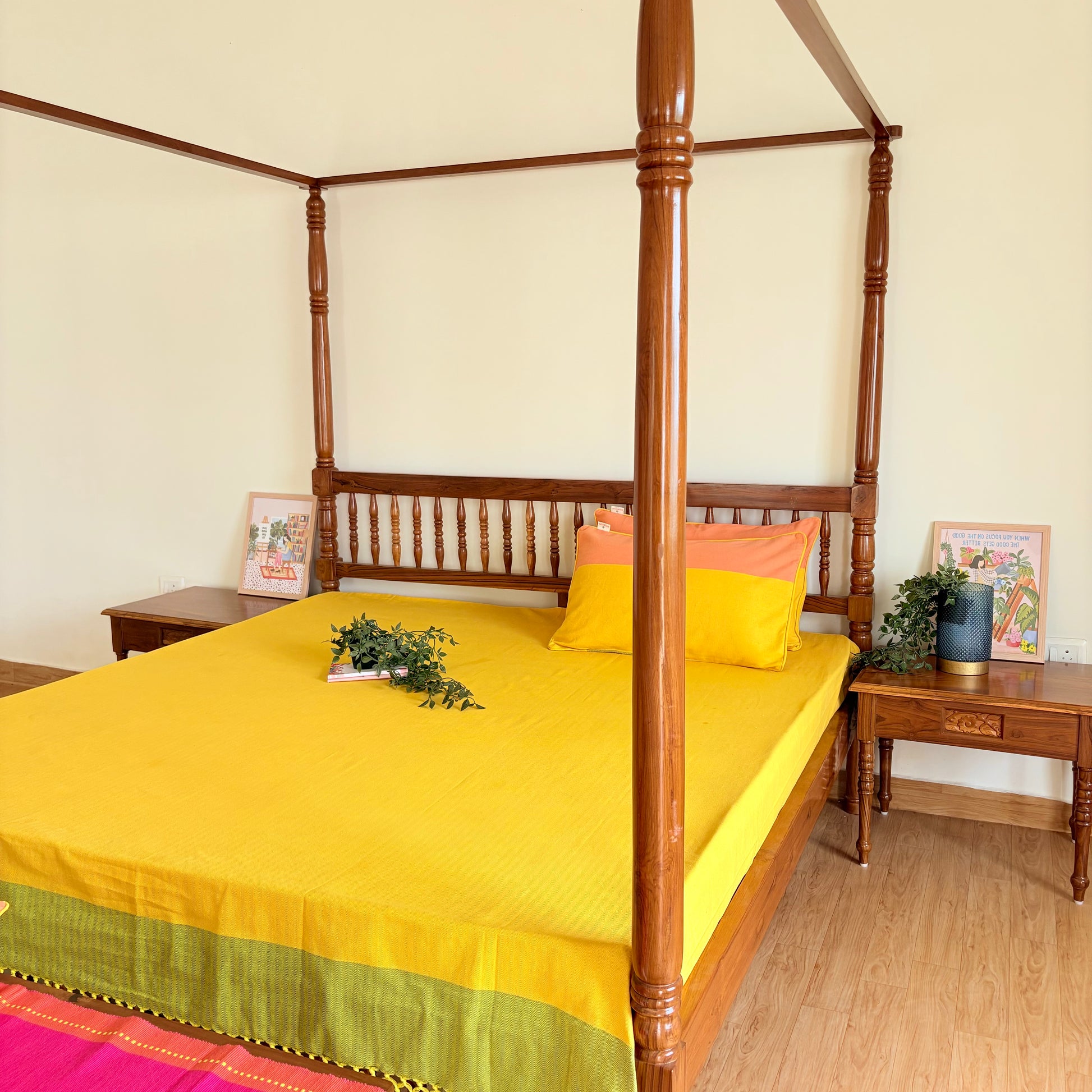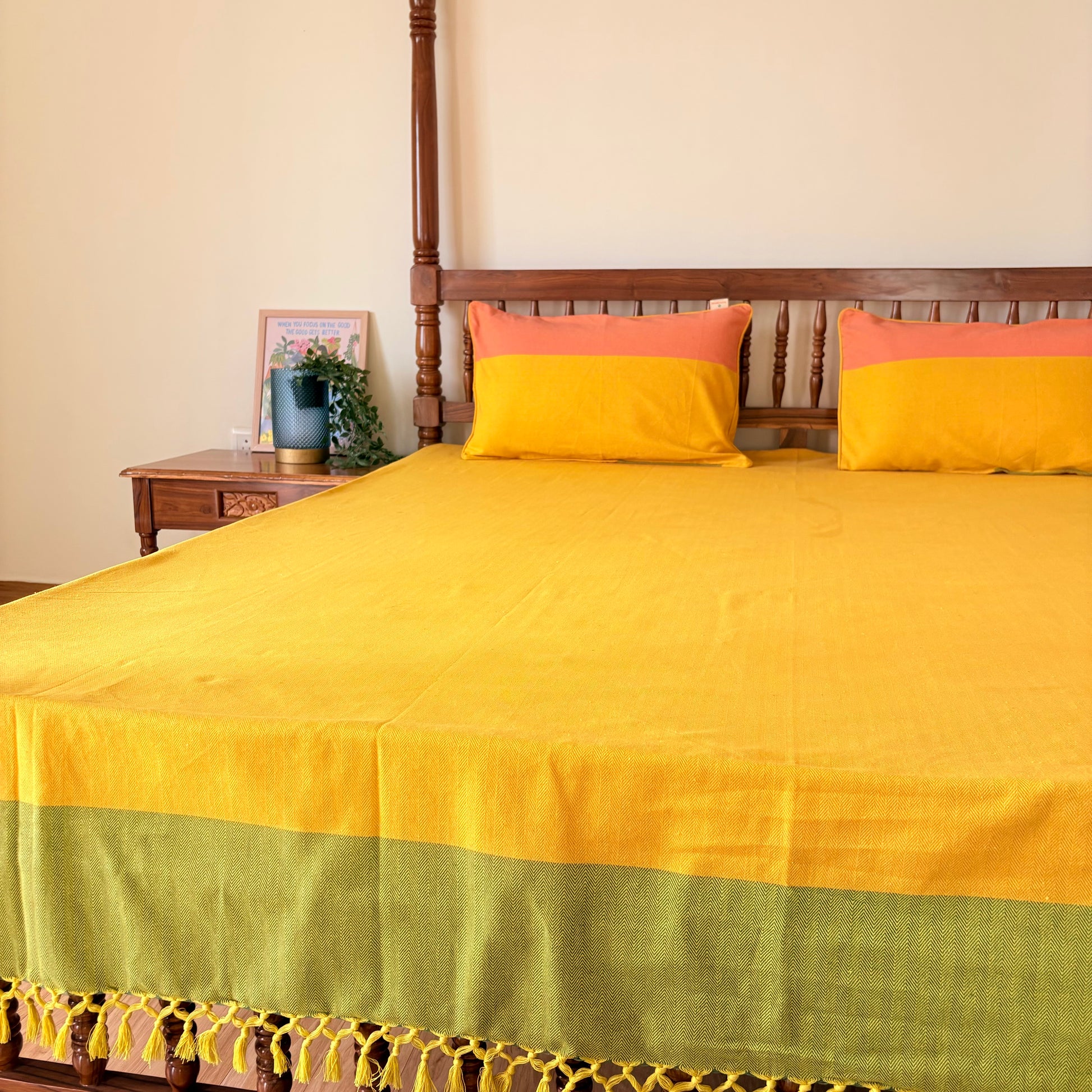 Handloom Yellow Premium Cotton Bedcover with Pillow Covers