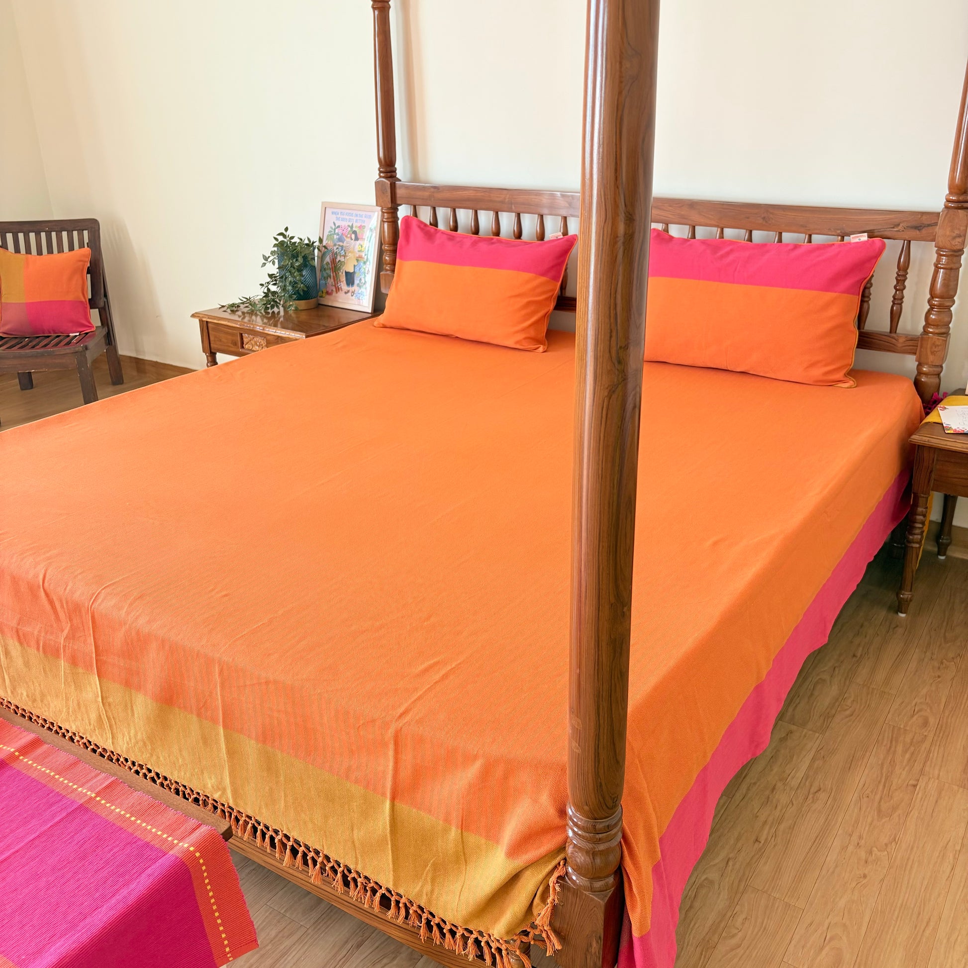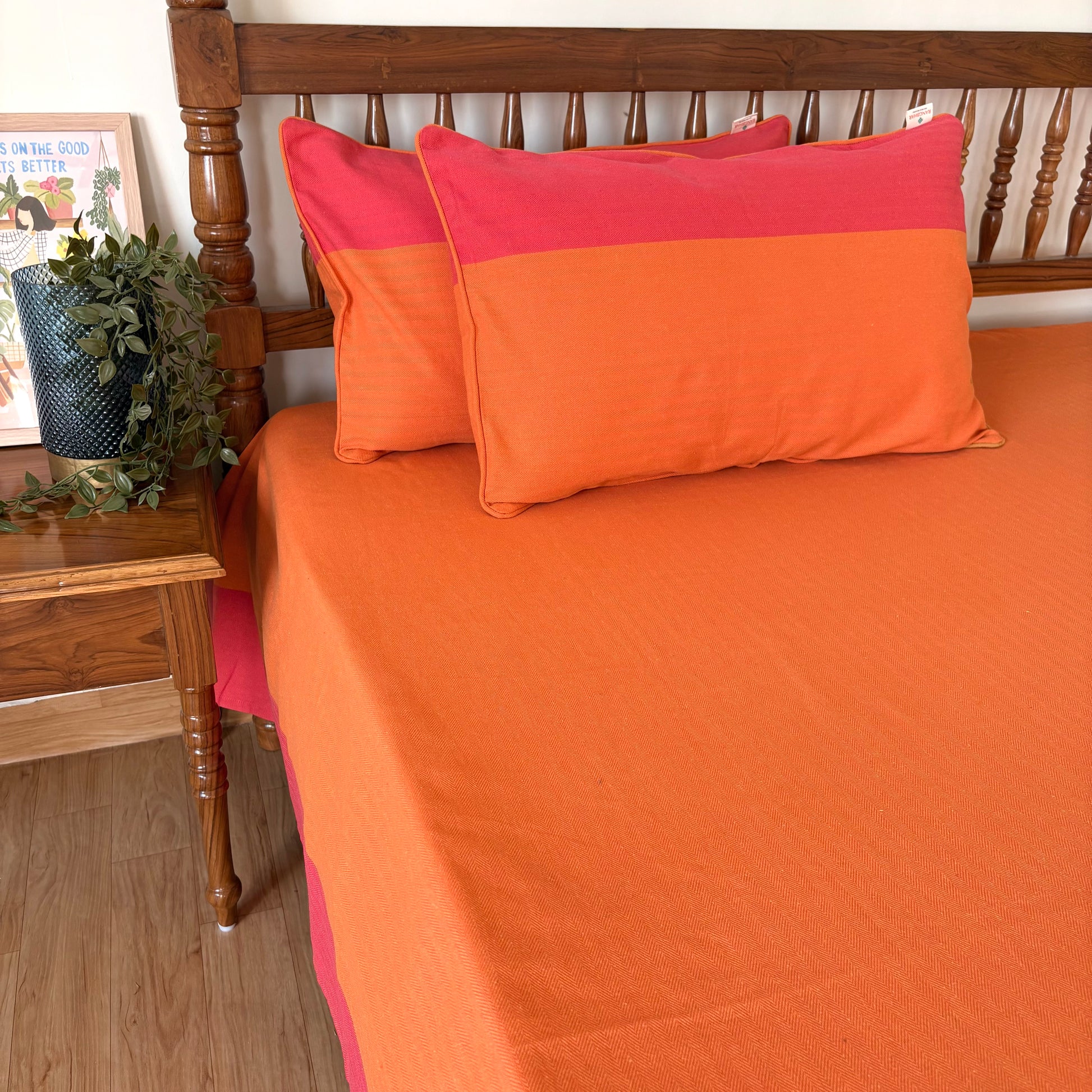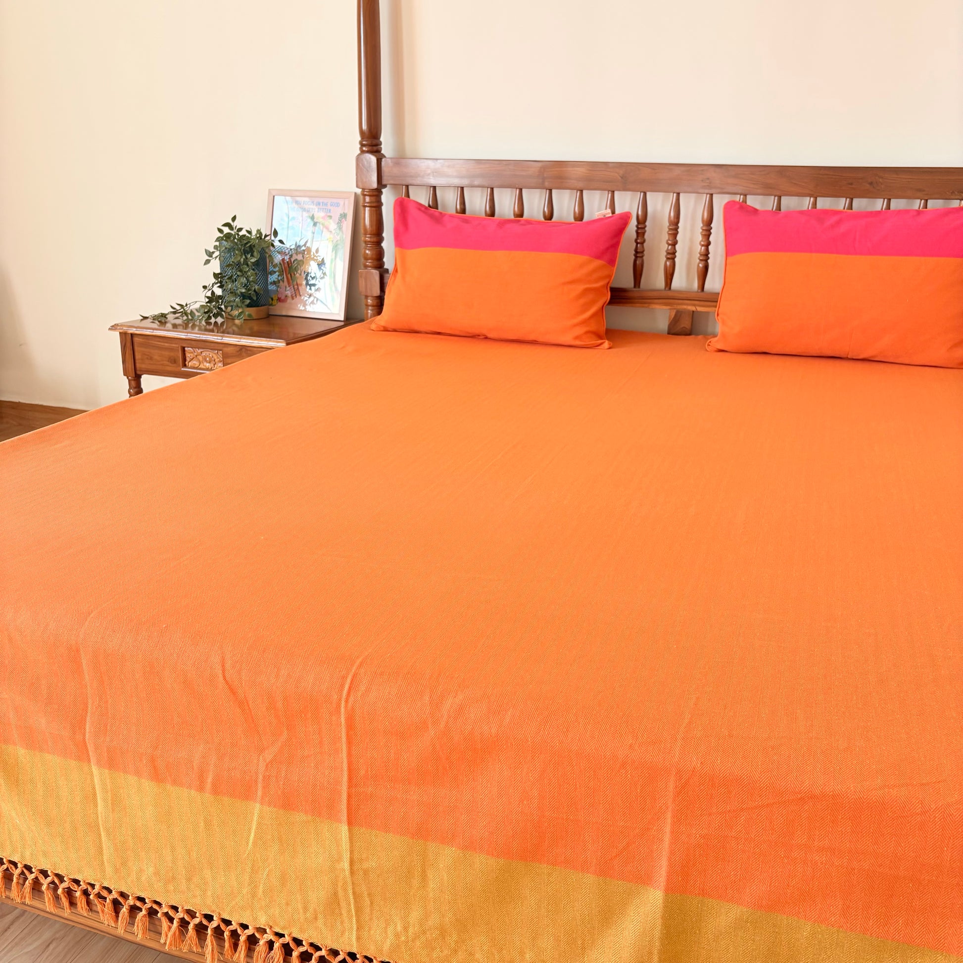 Handloom Orange Premium Cotton Bedcover with Pillow Covers
