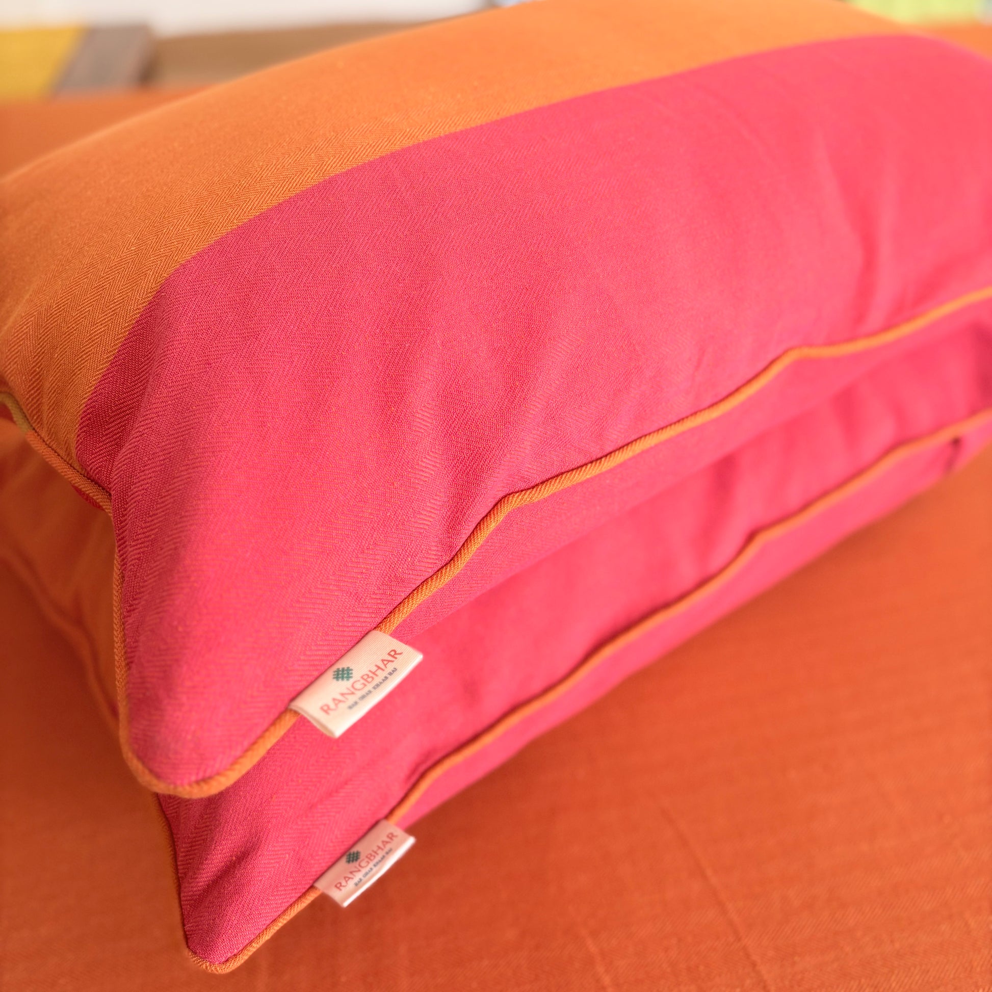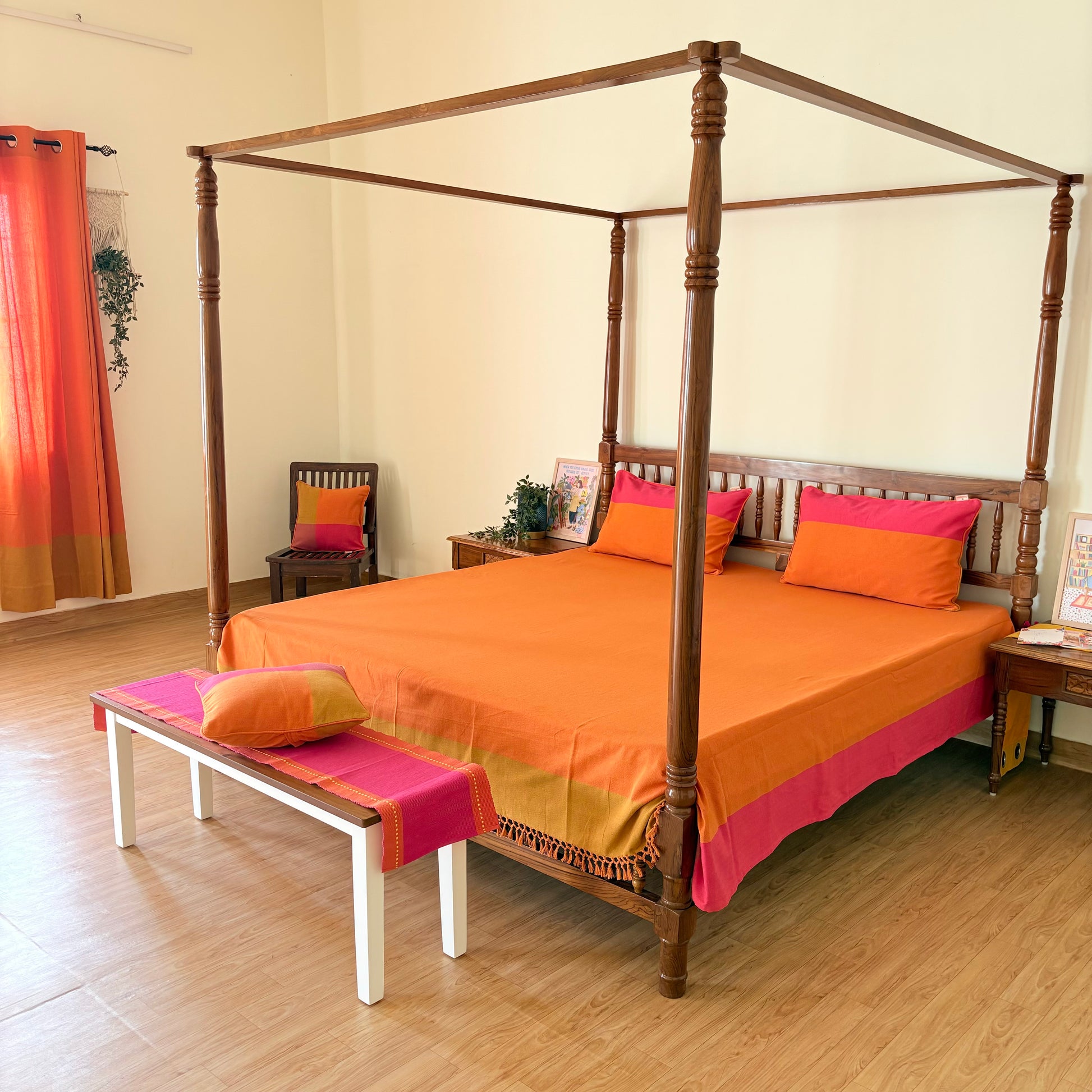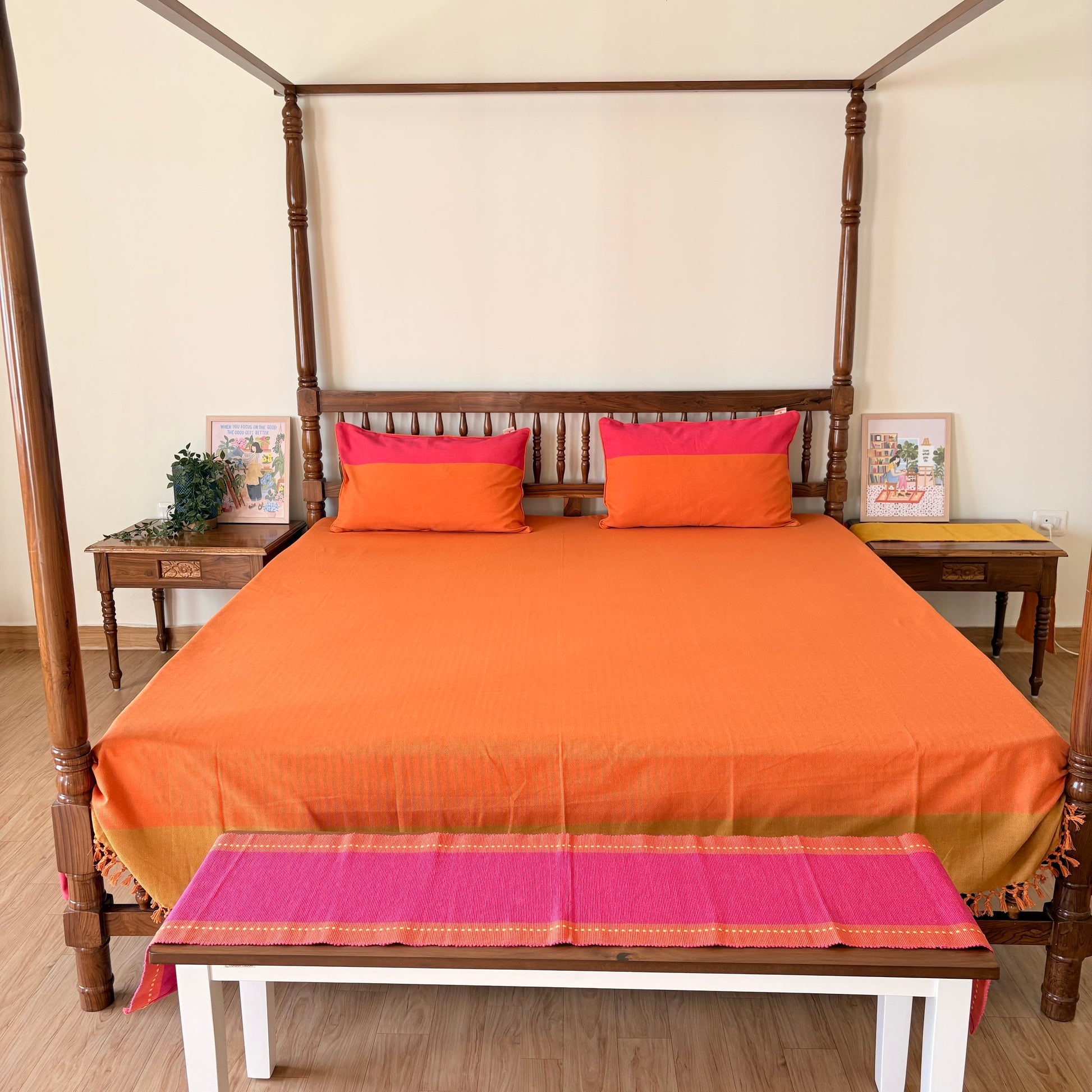 Handloom Orange Premium Cotton Bedcover with Pillow Covers